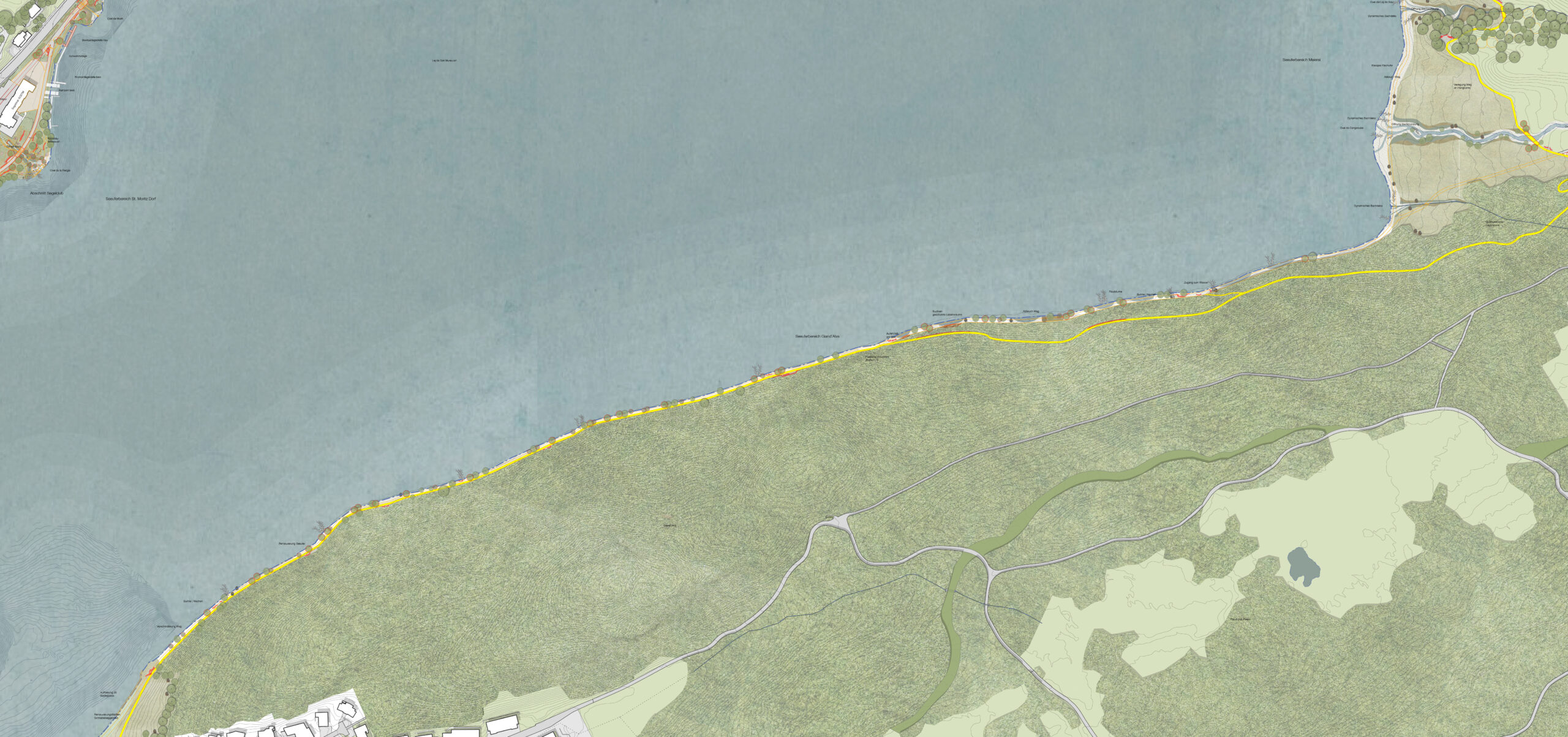 Der bestehende Uferweg soll durch einen Teilrückbau verschmälert und teilweise vom Ufer weg in den Wald verlegt werden; soll aber in seiner Anlage auch zukünftig für behinderte Menschen nutzbar bleiben. Dadurch soll die Attraktivität des Weges erhöht und gleichzeitig eine ökologisch interessante und vom Menschen nicht beeinflusste Übergangszone Wasser – Wald geschaffen werden. Die geplante Revitalisierung liefert den notwendigen Ersatz, damit die Aufwertung im Bereich „Segelclub“ umgesetzt werden kann.